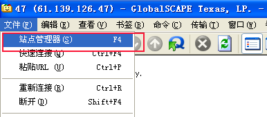 | 2.运行CuteFTP,点文件菜单中的“站占管理器”,或者直接按F4,调出站点管理器。 |